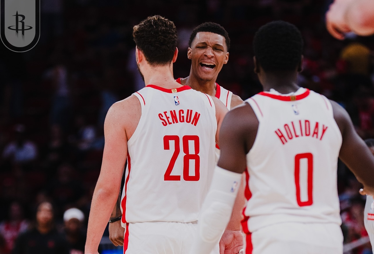 最后一点,就是火箭雄厚的轮转深度。本场比赛亚当斯、泰特、芬尼史密斯等人都没有出场,但是休斯顿雨姐JD戴维森展现了极佳的比赛状态,有三分有组织,冲击力也很强。卡佩拉冲抢前场篮板的保证,奥克吉手感也不错,按照这个趋势,火箭新赛季至少有12人具备轮转实力,乌度卡手里的牌确实用不完。当然,火箭也并非完美无缺,谢泼德有点像两个赛季前的里夫斯,什么都会点,能投篮,也能找队友,防守判断都不错,但没有一样是特别精通的,火箭可没有太多给他练级的时间,而且他受迫性失误比较多。
