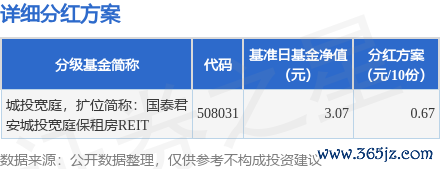 本站消息,4月22日发布《国泰君安城投宽庭保障性租赁住房封闭式基础设施证券投资基金收益分配的公告》。本次分红为2024年度第2次分红。公告显示长胜证券,本次分红的收益分配基准日为12月12日,详细分红方案如下: