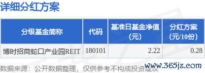 本站消息搭搭网,4月22日发布《博时基金管理有限公司关于博时招商蛇口产业园封闭式基础设施证券投资基金收益分配的公告》。本次分红为2024年度的第3次分红。公告显示,本次分红的收益分配基准日为12月12日,详细分红方案如下: